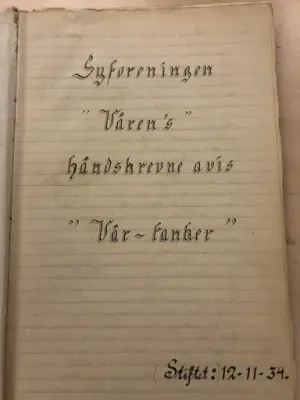 Den håndskrevne internavisen "Vårtanker", fra arkivet etter Syforeningen Våren. - 3/4