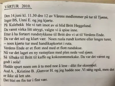 Vårtur av nyere dato, nærmere bestemt 2010. Fra arkvet etter Syforeningen Våren