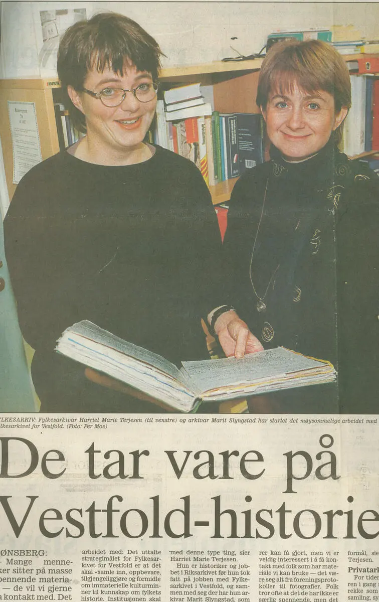Fylkesarkivet i Vestfold ble opprettet med et klart mandat: «Fylkesarkivet for Vestfold skal samle inn, oppbevare, tilgjengeliggjøre og formidle om immaterielle kulturminner til kunnskap om fylkets historie. Institusjonen skal arbeide med tradisjonsmateriale, historiske private- og fylkeskommunale arkiver».